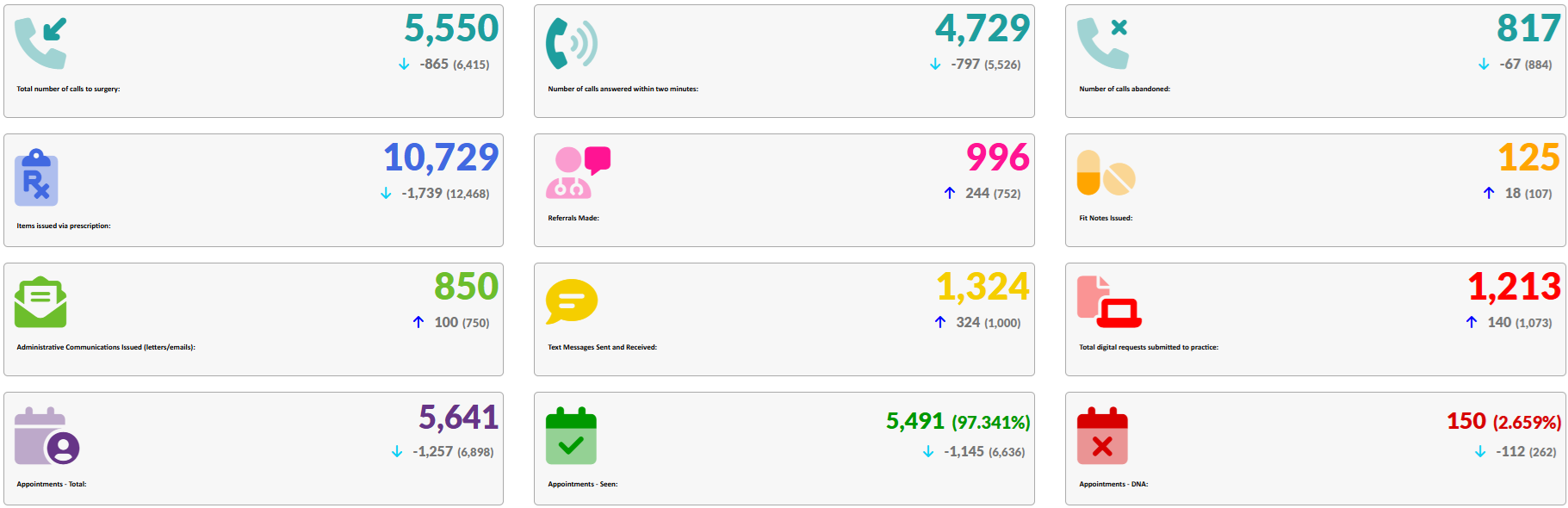 Please note that this data does not capture the whole workload of general practice but simply gives an example of the workload being experienced by the practice during the previous month.