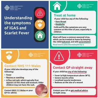 Visit https://phw.nhs.wales/strep-a for information on Strep A, Scarlet Fever and iGAS, including how to spot the symptoms.